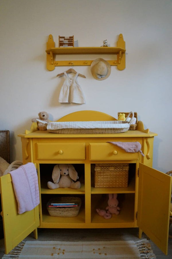 De kast is zowel aan de binnen- buitenkant gerestyled