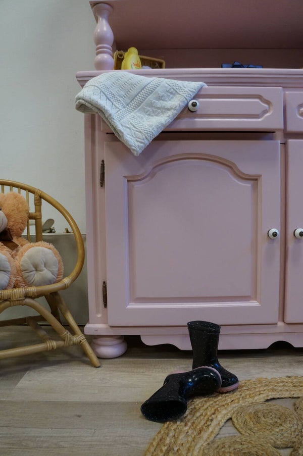 De kast is zowel aan de binnen- buitenkant gerestyled