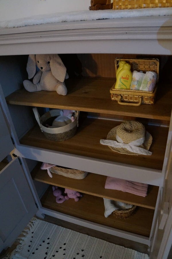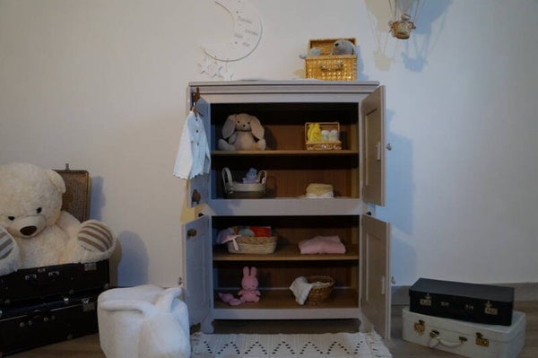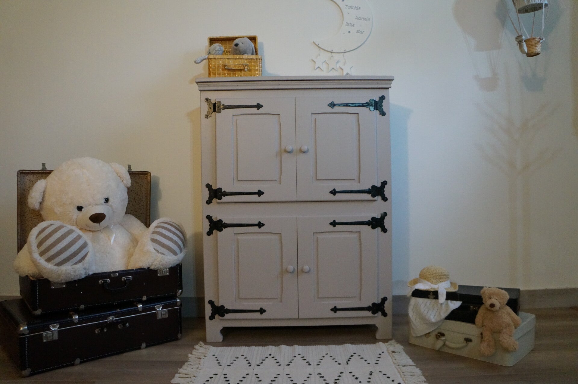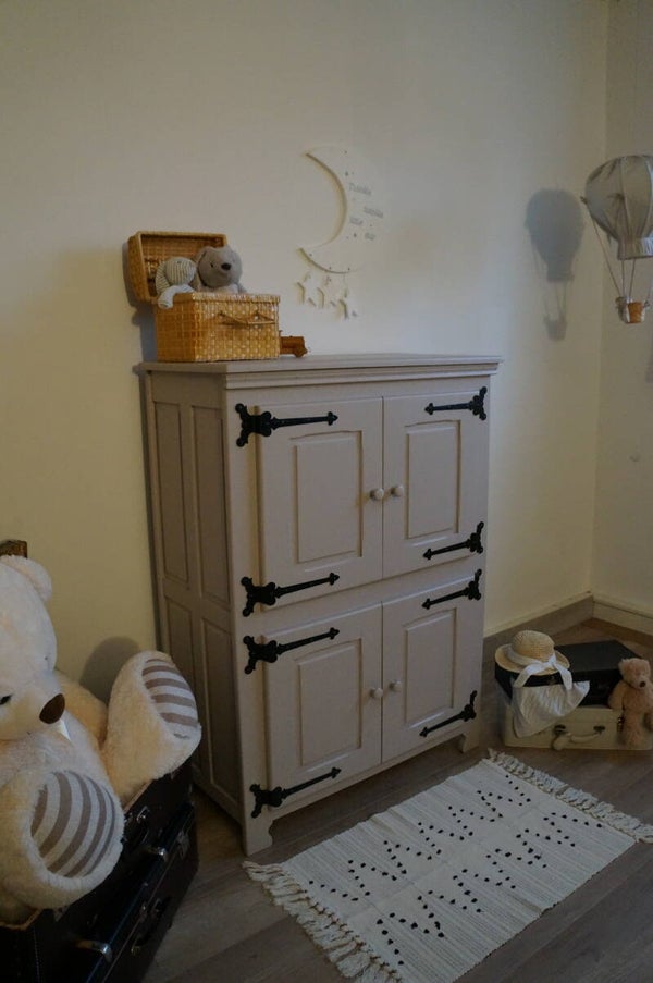 De kast is zowel aan de binnen- buitenkant gerestyled